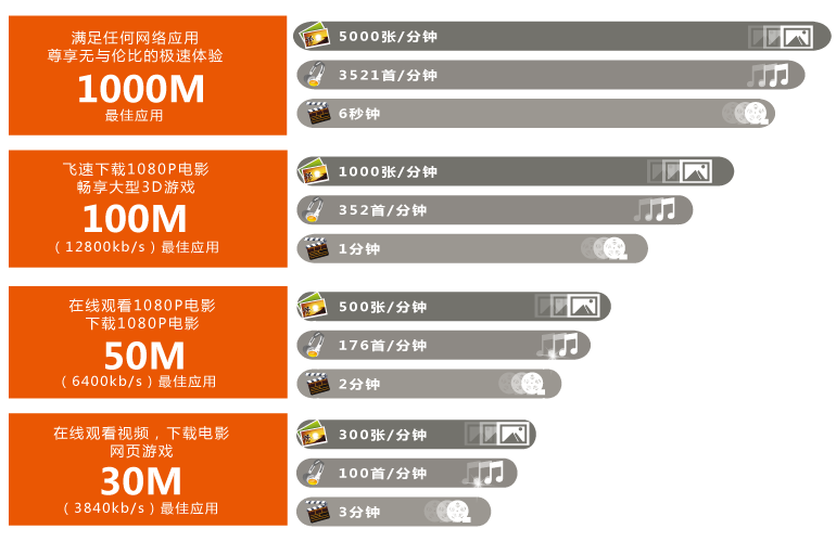 10-1000M不同套餐組合,滿足多樣上網(wǎng)需求